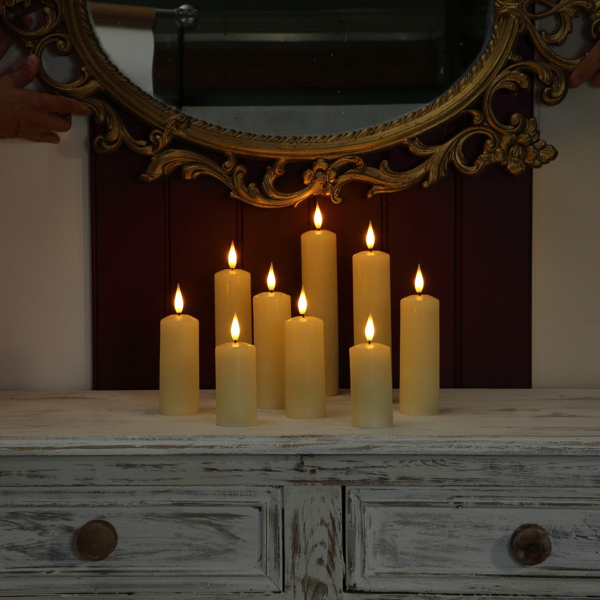 At the core of Alderbrook’s design philosophy is visual fidelity. Each candle is typically constructed from real paraffin wax rather than molded plastic. This material choice allows the surface to diffuse light naturally, closely mimicking the soft translucence of a burning wax candle. Many models incorporate a “melted edge” or uneven rim detail to simulate the organic deformation that occurs when wax softens near a flame. This subtle irregularity significantly enhances realism when the candle is viewed at close range.
